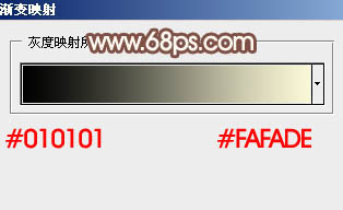 4、创建渐变映射调整图层,颜色设置如图9,确定后把图层不透明度改为:30%,效果如图10。