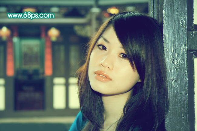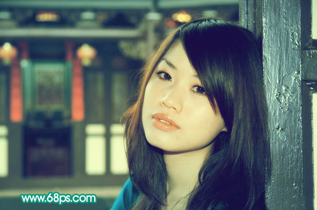 Photoshop调出室内人物图片古典青黄色(8)