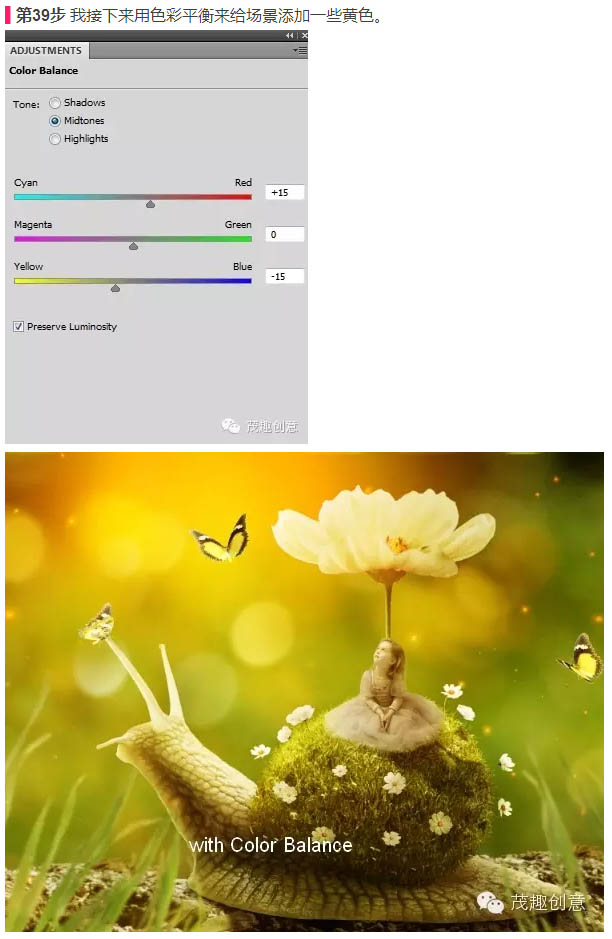 39、我接下来用色彩平衡来给场景添加一些黄色。