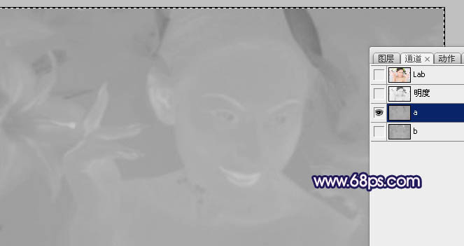 1、打开原图素材,选择菜单:图像 > 模式 > Lab颜色,确定后按Ctrl + J 把背景图层复制一层,点通道面板,选择a 通道,按Ctrl + A 全选,按Ctrl + C 复制,点b 通道按Ctrl + V 粘贴,回到图层面板,选择:图像 > 模式 > RGB 颜色,选择不拼合,效果如图2。