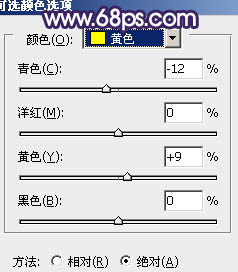 19、创建可选颜色调整图层,参数设置如图38,确定后把图层不透明度改为:30%,效果如图39。
