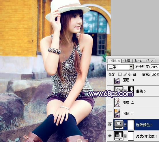 Photoshop调出外景人物照片淡淡的红紫色(12)