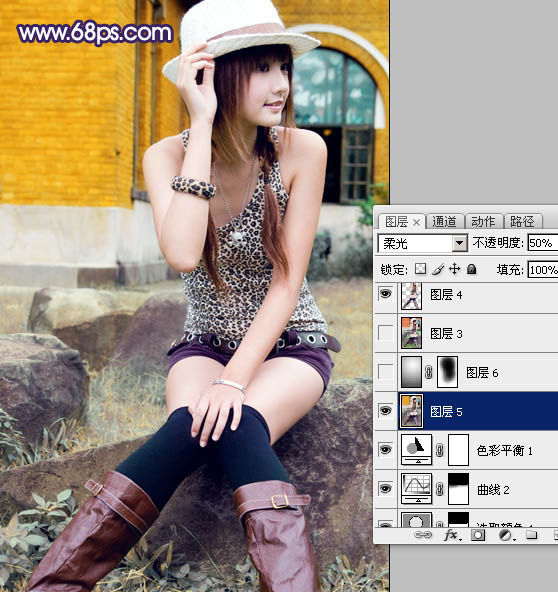 10、新建一个图层,盖印图层。执行:滤镜 > 模糊 > 高斯模糊,数值为5,确定后把图层混合模式改为“柔光”,图层不透明度改为:50%,效果如下图。