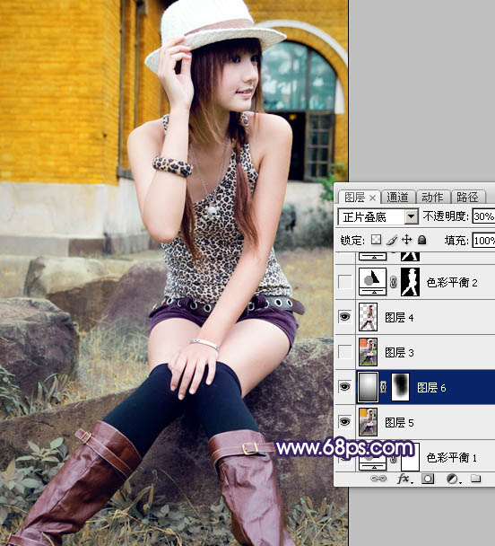 Photoshop调出外景人物照片淡淡的红紫色(8)