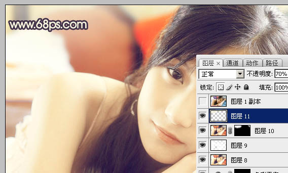 Photoshop调出室内美女照片古典淡橙色(10)