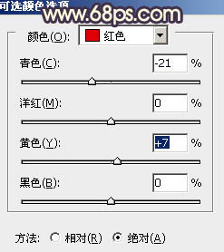 10、创建可选颜色调整图层,对红色进行调整,参数设置如图22,效果如图23。