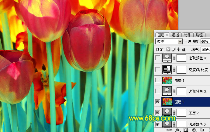 Photoshop调出郁金香图片鲜艳的青黄色(8)