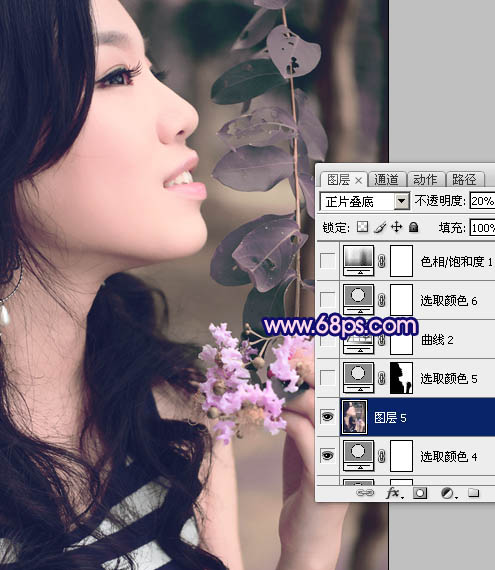 Photoshop调出外景人物照片柔美的粉紫色(6)