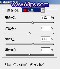 8、创建可选颜色调整图层,对红,黄,洋红进行调整,参数设置如图20 - 22,确定后用黑色画笔把人物部分擦出来,效果如图23。