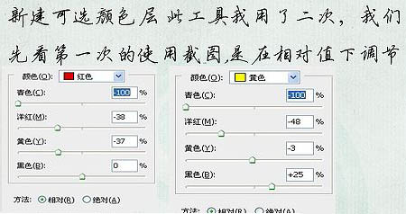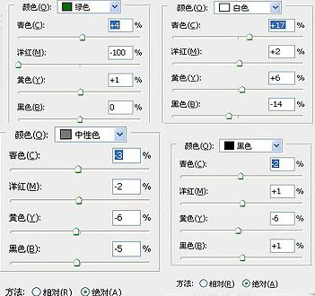 6、再创建可选颜色调整图层,这次是在绝对值下调整,参数设置如下图。