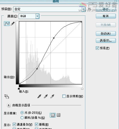 6、按ctrl+M调整曲线,参数设置如下图: