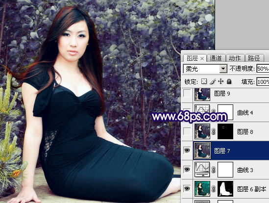 Photoshop调出外景人物照片高雅深蓝色(10)