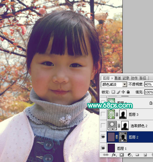 Photoshop调出室外儿童照片可爱的粉红色(4)