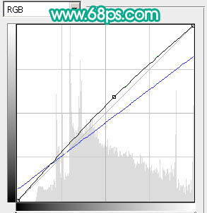 8、创建曲线调整图层,对RGB及蓝色进行调整,参数设置如图14,确定后用黑色画笔把人物衣服部分擦出来,如图15。
