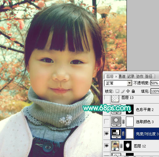 Photoshop调出室外儿童照片可爱的粉红色(9)