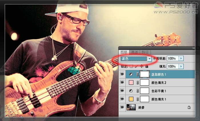7、将此调整图层设为“滤色”模式。