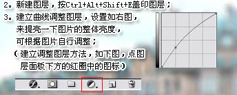 3、创建曲线调整图层,参数设置如下图右,提亮一下图片的整体亮度,可根据图片自行调整。