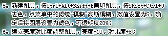 5、新建一个图层,盖印图层。按Ctrl + Shift + U 去色,执行:滤镜 > 模糊 > 高斯模糊,数值为5,确定后把图层混合模式改为“滤色”,图层不透明度改为:20%。