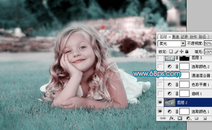 Photoshop调出外景儿童照片柔美的中性青红色(3)