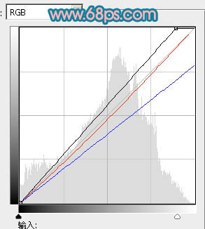 4、创建曲线调整图层,对RGB,红,蓝调整,参数设置如图6 - 8,效果如图9。