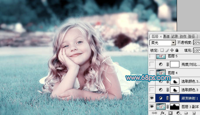 Photoshop调出外景儿童照片柔美的中性青红色(6)