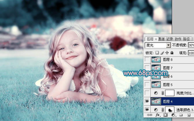 Photoshop调出外景儿童照片柔美的中性青红色(7)