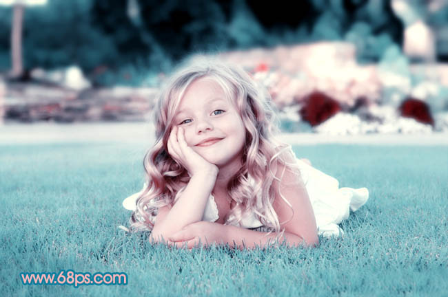 Photoshop调出外景儿童照片柔美的中性青红色(8)