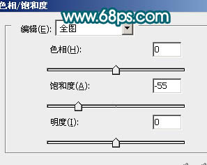 13、创建色相/饱和度调整图层,适当降低全图的饱和度,参数设置如图21,效果如图22。