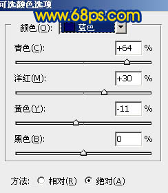 6、创建可选颜色调整图层,对红,黄,蓝进行调整,参数设置如图16 - 18,效果如图19。