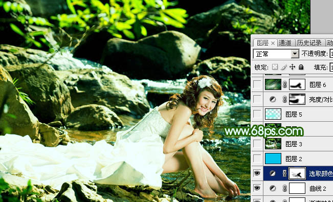 Photoshop调出外景人物照片粉嫩的青绿色(6)