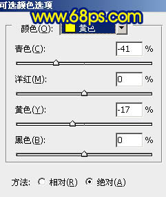 5、创建可选颜色调整图层,参数设置如图15,效果如图16。