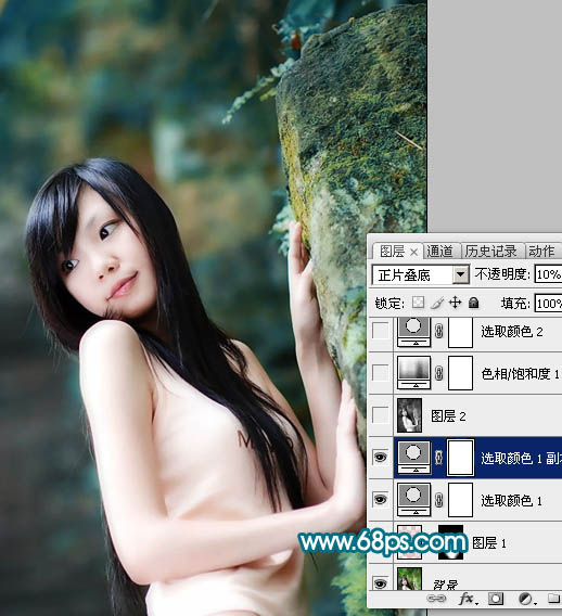 3、把当前可选颜色调整图层复制一层,图层混合模式改为“正片叠底”,图层不透明度改为:10%,效果如下图。