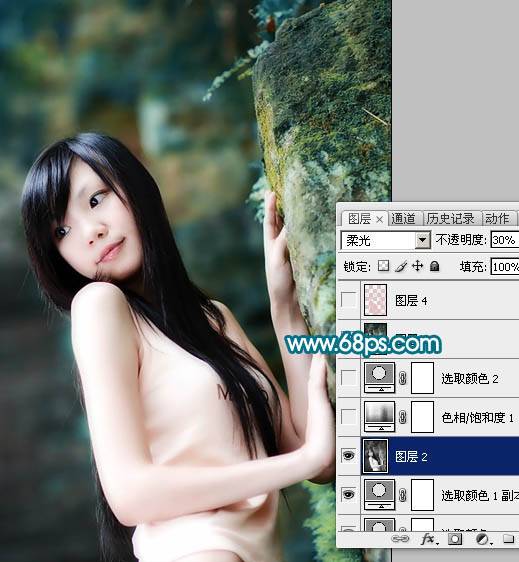 4、新建一个图层,按Ctrl + Alt + Shift + E 盖印图层。执行:滤镜 > 模糊 > 高斯模糊,数值为5,确定后把图层混合模式改为“柔光”,图层不透明度改为:30%,效果如下图。