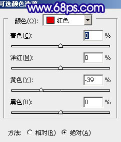 3、创建可选颜色调整图层,对红,青,洋红调整,参数设置如图6 - 8,效果如图9。