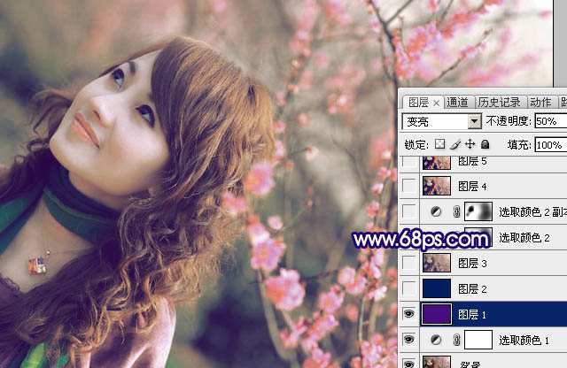 Photoshop调出外景人物照片淡淡粉红色(3)
