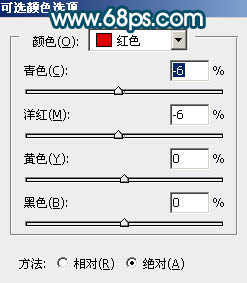 2、创建可选颜色调整图层,对红、黄调整,参数设置如图3,4,效果如图5。
