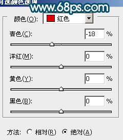 8、创建可选颜色调整图层,参数设置如图13 - 15,效果如图16。