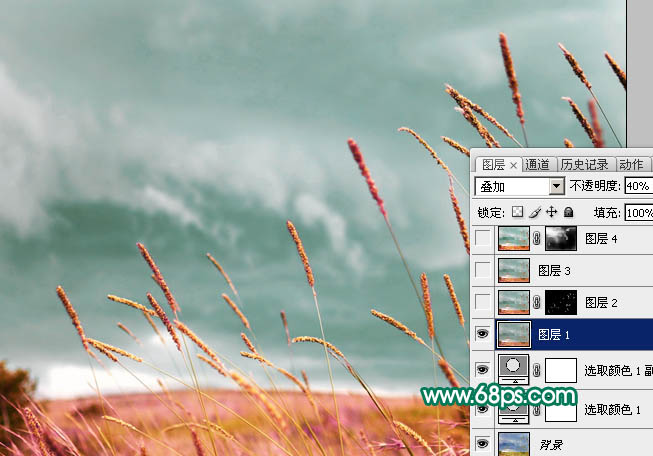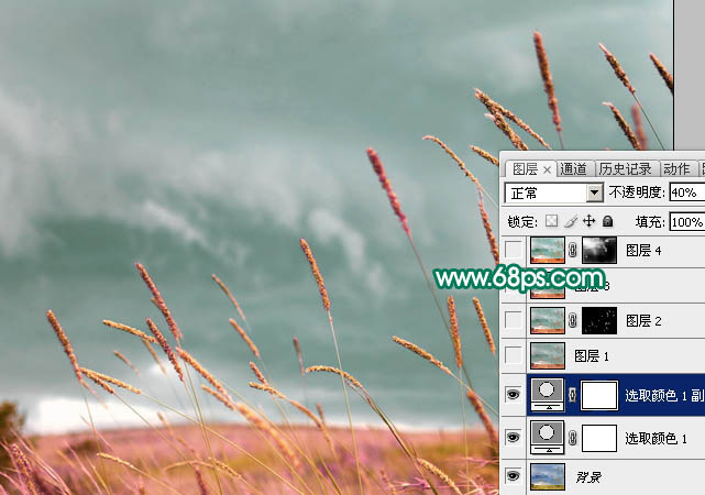2、把可选颜色调整图层复制一层,图层不透明度改为:40%,效果如下图。
