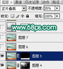 7、新建一个图层,盖印图层。图层混合模式改为“正片叠底”,图层不透明度改为:35%,如图14。按住Alt 键添加图层蒙版,选择白色画笔把图15所示的地面部分擦出来,效果如图16。