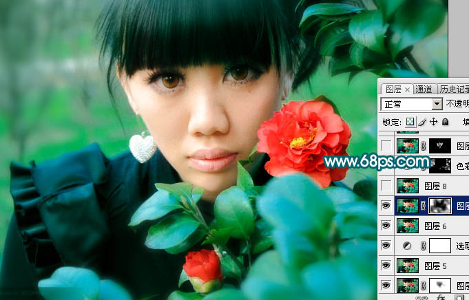 8、新建一个图层,盖印图层。执行:滤镜 > 模糊 > 高斯模糊,数值为5,确定后加上图层蒙版,用黑色画笔把需要清晰的部分涂出来,如下图。