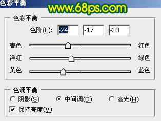 5、创建色彩平衡调整图层,参数设置如图12,效果如图13。