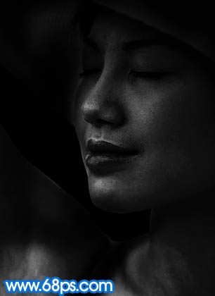 7、新建一个图层,盖印图层。点通道面板,把绿色通道复制一层。对绿色副本通道进行操作。用曲线压暗,对比调大。脸部以外的部分用黑色画笔擦掉,效果如下图。