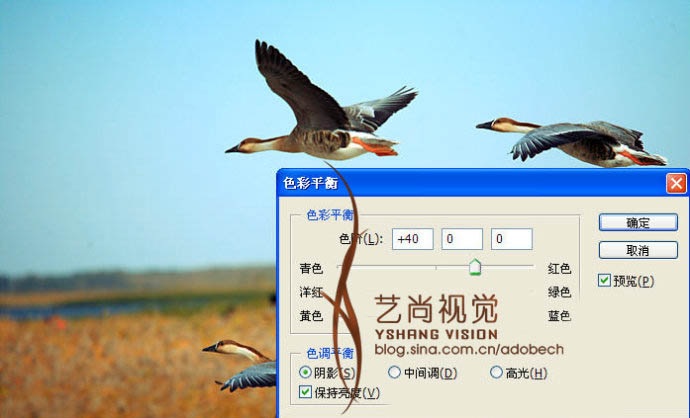 Photoshop打造漂亮的青红色大雁起飞图(2)