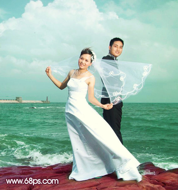 本教程简单介绍低像素的婚片调色。由于像素不高,人物及服饰部分不需要精细的处理。只要调色即可,色彩可以根据自己的喜好选择。