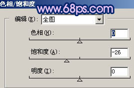 14、创建色相/饱和度调整图层,参数设置如图27,效果如图28。