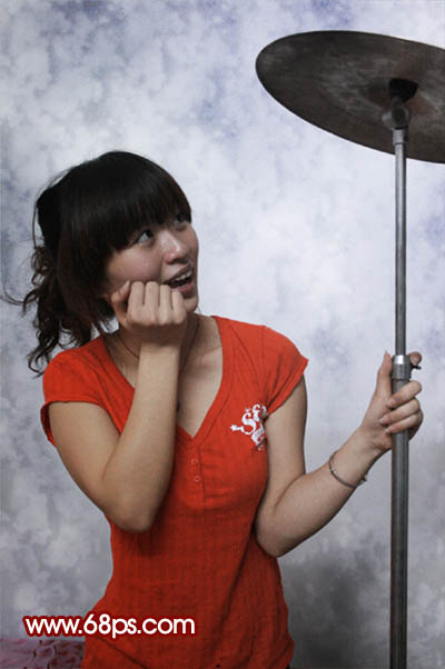 8、新建一个图层,按字母“D”,把前景背景颜色恢复到默认的黑白。执行:滤镜 > 渲染 > 云彩。确定后把图层混合模式改为“叠加”,图层不透明度改为:80%,加上图层蒙版,用黑色画笔把人物部分擦出来,效果如下图。