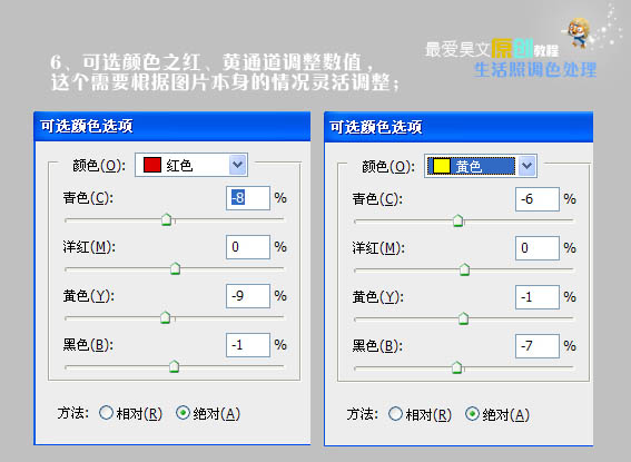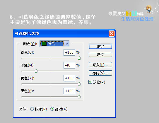 6、创建可选颜色调整图层,参数设置如下图。使人物肤色更为通透白皙。