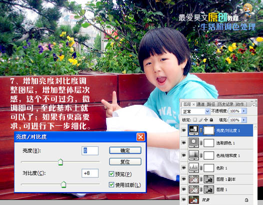 7、创建亮度/对比度调整图层,增加整体层次感。这个不可过分,微调即可。至此基本上就可以了。如果有更高要求可以进行下一步细化。