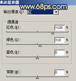3、创建通道混合器调整图层,对红色及蓝色进行调整,参数设置如图8,9,效果如图10。