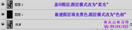1、打开原图素材,新建一个图层填充黑色,图层混合模式改为“色相”。